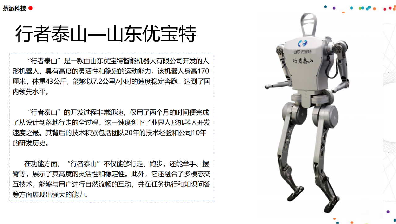從實驗室到生產線,從概念設想到產品落地,中國人形機器人領域迎來了前所未有的井噴式發展。一款款設計精巧、功能強大的人形機器人如雨后春筍般涌現,它們或靈巧如舞者,或力大無窮,更不乏擁有情感交互能力的“智慧伴侶”。這不僅是對技術極限的一次次挑戰,更是對“中國制造”向“中國智造”跨越的生動詮釋。??在這一波人形機器人浪潮中,無數初創團隊猶如璀璨星辰,他們懷揣夢想,勇于探索未知。每一個深夜的燈火,每一次算法的迭代,都是對未知世界的勇敢叩問。正是這些充滿激情與創造力的團隊,為人形機器人產業注入了源源不斷的活力與希望。??作為深耕機器人應用場景研究的先行者,武漢茶派科技深知責任重大。在這一年里,我們積極擁抱變革,密切關注中國人形機器人產業的每一步成長。我們愿做那座橋梁,連接百家智慧,匯聚行業力量,共同推動人形機器人從技術的象牙塔走向廣闊的應用市場,讓科技之光溫暖每一個角落。??展望2025,我們滿懷期待。隨著技術的不斷迭代與應用的持續深化,人形機器人將不再只是展臺上的明星,而是真正成為我們生活的一部分。它們將穿梭于家庭、醫院、工廠、學校……以更加人性化、智能化的方式服務人類,成為我們不可或缺的伙伴與朋友。??在這一年的尾聲,讓我們向所有為中國機器人產業發展默默奉獻的科研工作者致以最崇高的敬意!是你們,用智慧和汗水鋪就了通往未來的智能之路。2025,讓我們攜手并進,共同見證人形機器人從夢想走進現實,開啟一個屬于所有人的智能新時代!??加入我們,一起見證并參與這場科技革命,讓未來因你我而更加精彩!